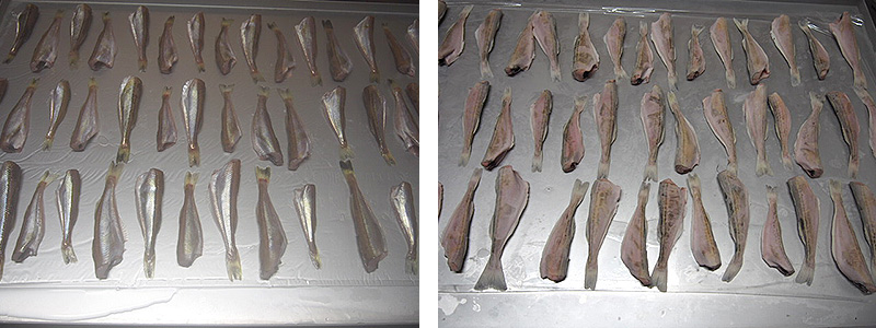 (左)ハタハタ凍結前 (右)ハタハタ凍結後