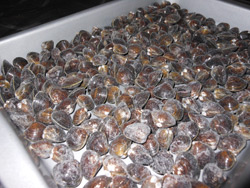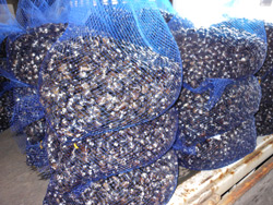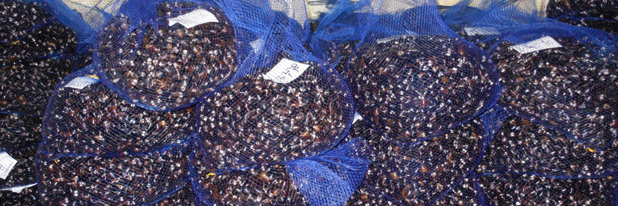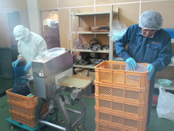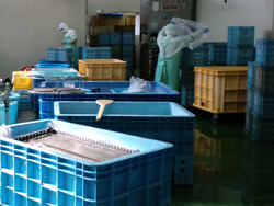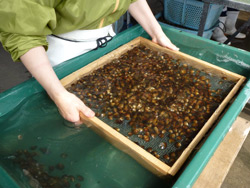 しじみ貝の洗浄(原材料)、目視による殻貝、死貝除去
